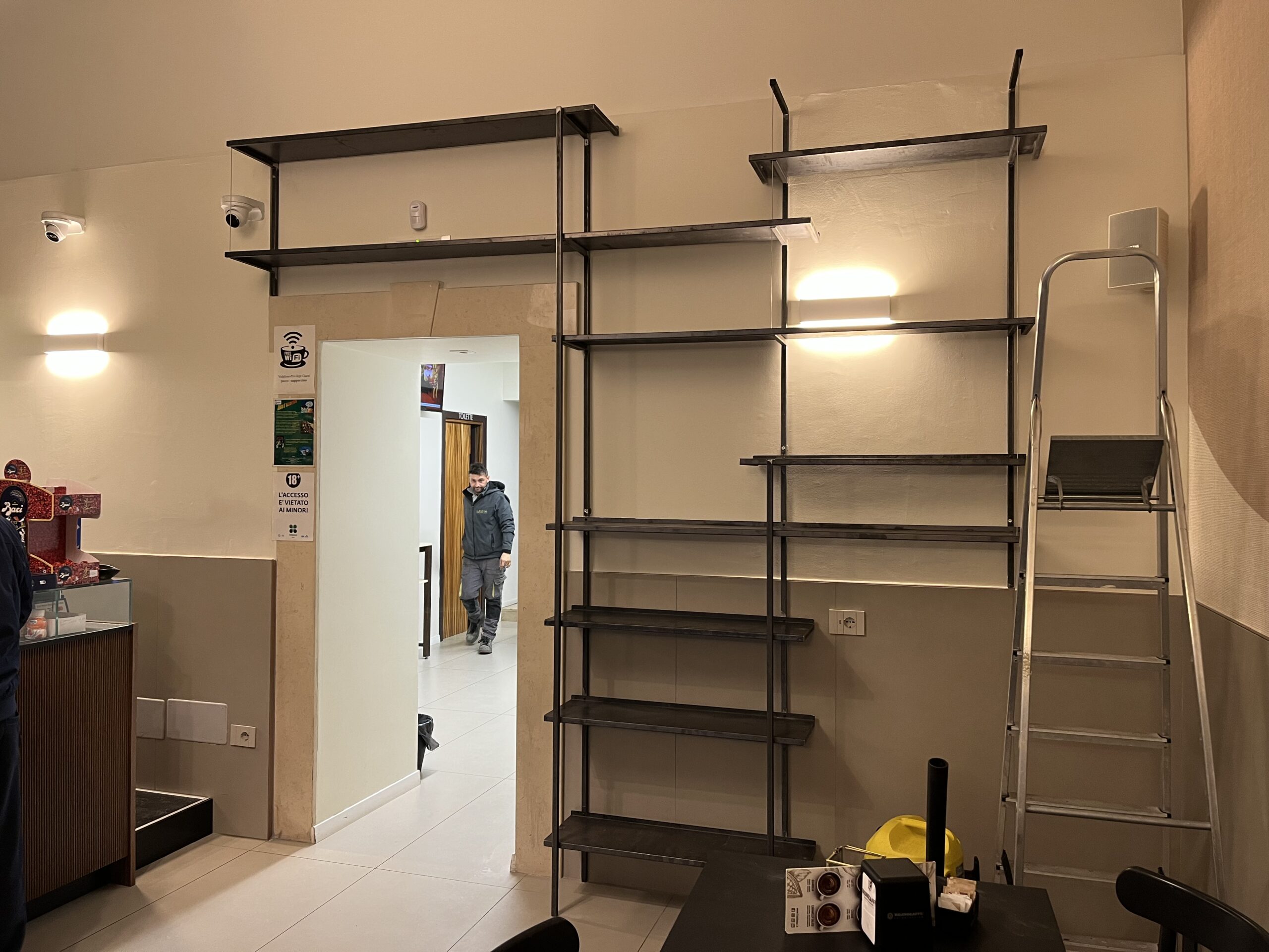 Realizzazione e montaggio scaffalatura e mensole per arredo bar